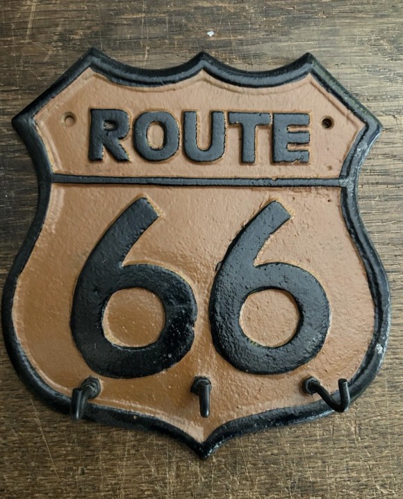 Eine tolle Deko für ihr Zuhause. Eignet sich hervorragend als Schlüsselbrett oder Schlüsselleiste, genauso als Handtuchhalter oder in der Werkstatt um diverse Werkzeuge aufzuhängen. Dieses Schild im Nostalgie Look der berühmt berüchtigten US Route 66 macht etwas her und zieht Blicke auf sich. Es besteht aus schwerem Gusseisen.