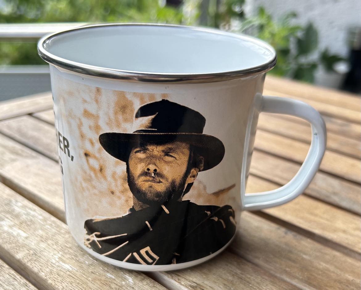 Clint Eastwood Emaille Becher - Zuviele Arschlöcher - zuwenig Kugeln