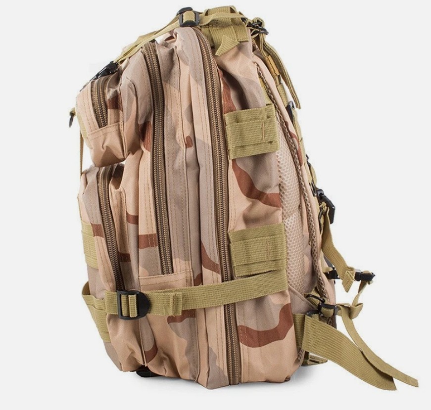 Hergestellt aus hochwertigen Materialien. Gepolsterte, verstellbare Schultergurte, Schnappverschluss. Reißverschlüsse. Hydro-Pack-Fach. Griff im oberen Teil zum bequemen Tragen des Rucksacks. Verstellbarer Brustgurt, der mit einem Druckknopf befestigt wird Verstellbarer Hüftgurt mit Druckknopfverschluss. Belüftete Polsterung mit Schwamm am Rücken und an den Schultergurten. Gefertigte Rückseite und Trennwand – Wärmedämmung - MOLLE System