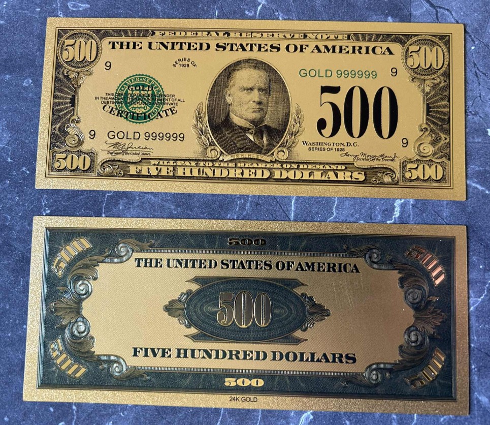 500 Dollar Dollarnote vergoldet - 24 Karat